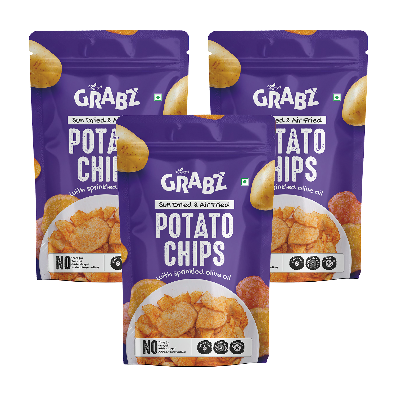 • Pack Contents – Pack of 4 GRABZ Jain Healthy Potato Chips (20g each).